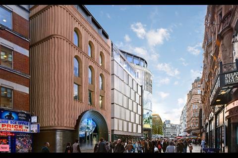 Images included in a public consultation launched last weekend show a series of undulating facades designed to resemble a stage curtain in homage to Leicester Square’s theatrical heritage, with a main entrance building located on Cranbourn Street.
